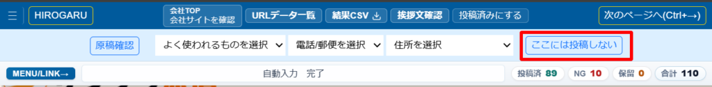 ページ内容などを見て、ここには投稿しないと判断した場合は、以下の赤枠の「ここには投稿しない」ボタンを押して下さい。