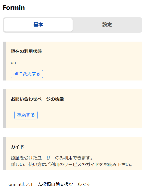 前提として拡張機能(エクステンション)の「Formin」がインストール、有効化されているとします。
