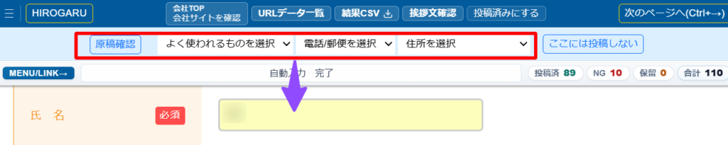 フォームによっては、クリックで自動入力されない場合があります。